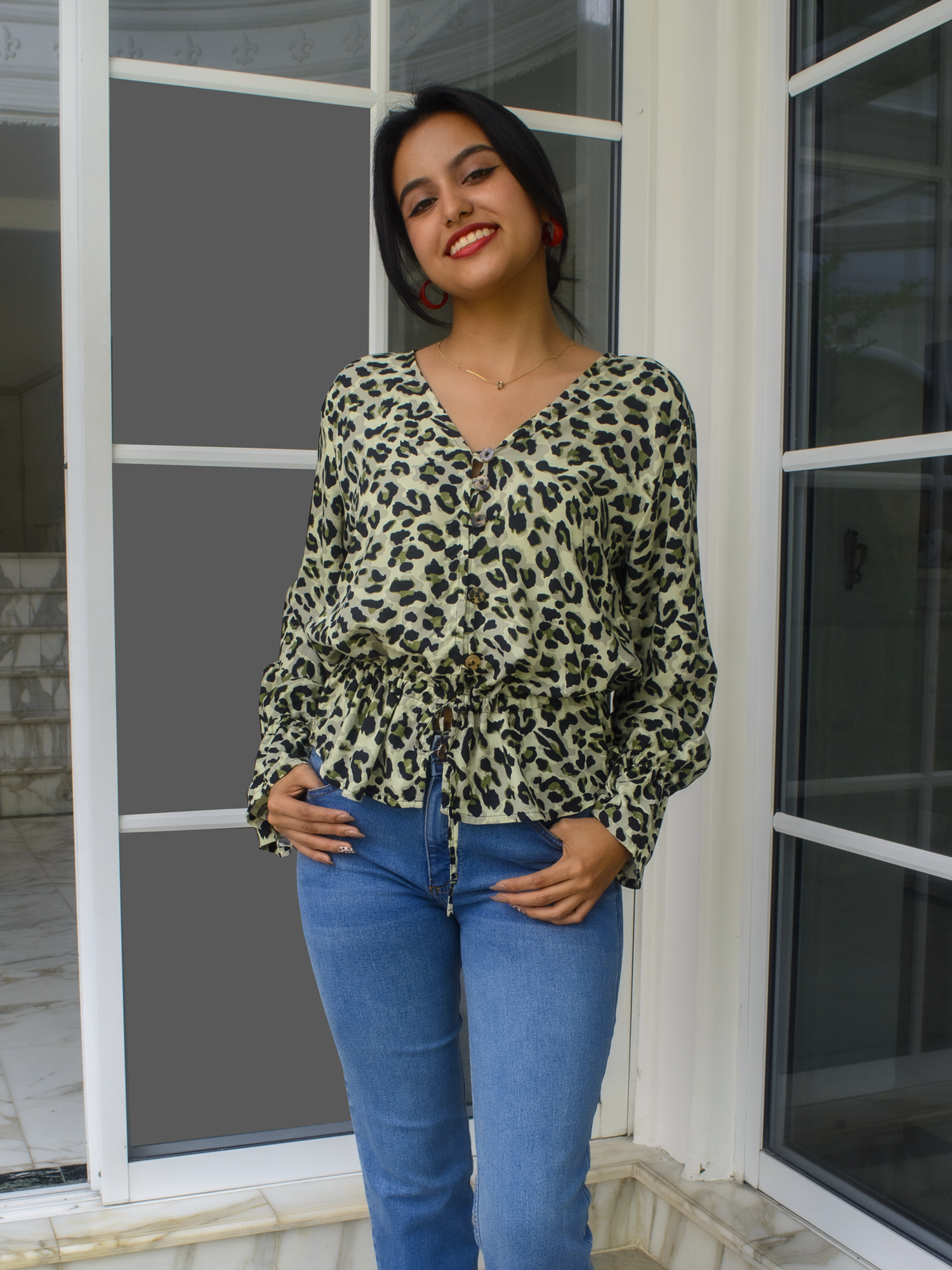 Blusa en animal print verde es una pieza clave para mujeres que buscan proyectar confianza, estilo y movimiento natural.