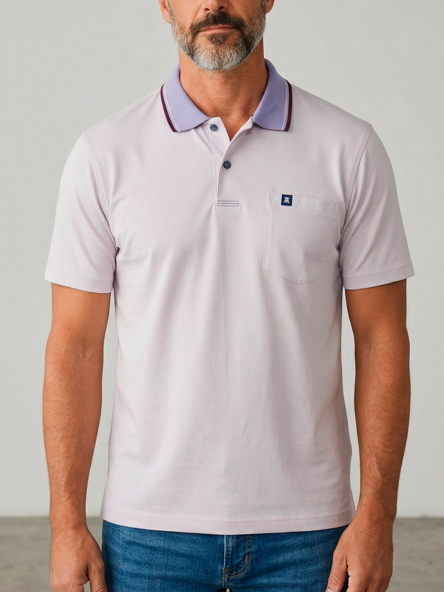 El cuello presenta una línea delgada en contraste que aporta un toque distintivo sin romper la armonía del diseño. La pechera con dos botones añade funcionalidad y estilo, destacándose por sus dos líneas bordadas en la parte final que elevan el acabado visual de la prenda.